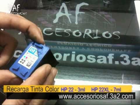 En este video que nos comparte este usuario de youtube podemos ver como recargar los cartuchos 22 de hp , el video esta muy bien explicado ya que esto es realmente muy facil de ralizar, solo hay que tener un poco de precaucion de no quemar el chip del cartucho o estropear el cabezal, se deben de utilizar guantes de latex al realizar estas operaciones para evitarnos inconvenientes.